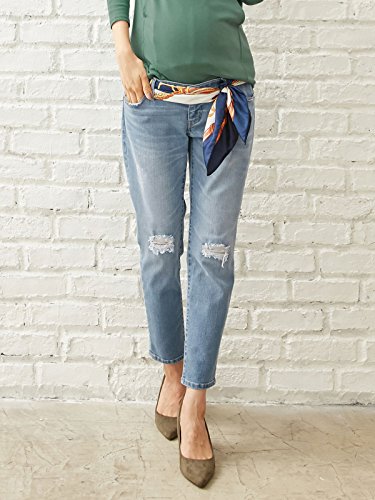 Angeliebe エンジェリーベ マタニティ パンツ ストレッチ デニム ダメージ テーパード 妊婦服 産前 産後 9号 ライトブルー 22179 22179320