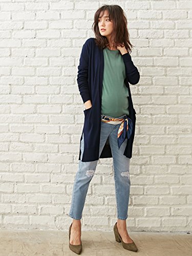 - ●【産前~産後まで使えるストレッチデニムダメージテーパード】本格的なクラッシュ加工。ウエストベルトの調整ゴムでお腹の変化に対応します。ヒップやひざまわりにゆとりを持たせたテーパードシルエットでこなれ感のあるデニムスタイルに。グレーのウエスト部分を折り返せば産後も使えます。
