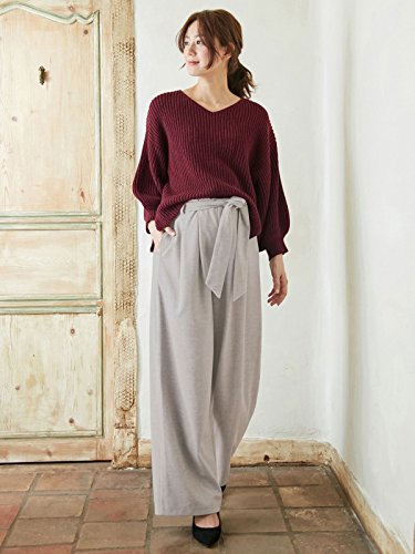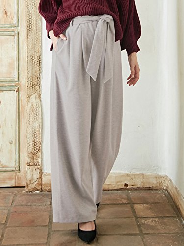 Angeliebe エンジェリーベ マタニティ パンツ 起毛ポンチ リボン付き ワイドパンツ 妊婦服 産前 産後 アジャスター調節可 S ~ M 杢グレー 22224 22224201
