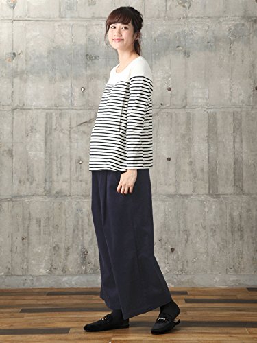 Angeliebe エンジェリーベ マタニティ パンツ ストレッチ コーデュロイ タック ワイドロングパンツ 妊婦服 産前 産後 ワイドパンツ フリー ネイビー 22279 22279400