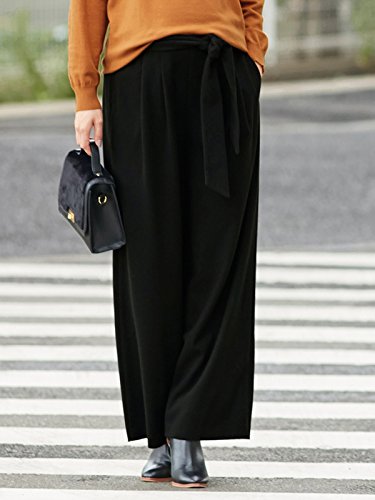 Angeliebe エンジェリーベ マタニティ パンツ 起毛ポンチ リボン付き ワイドパンツ 妊婦服 産前 産後 アジャスター調節可 M ~ L ブラック 22224 22224302