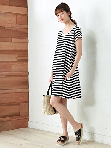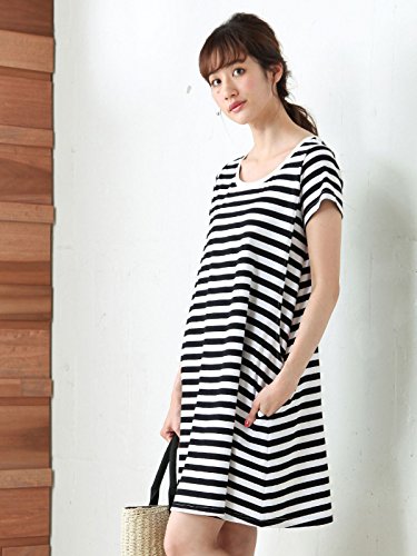 Angeliebe エンジェリーベ 産後用 授乳服 コットン Aライン ワンピース 授乳ウエア ワンピ 半袖 フリー ボーダー 30107 30107400