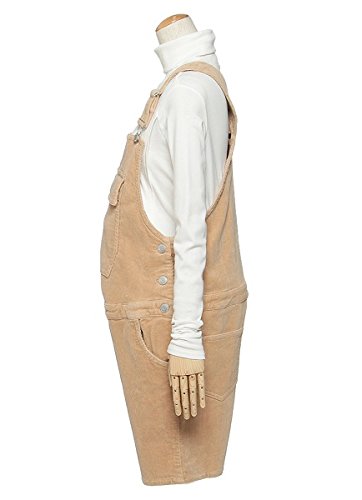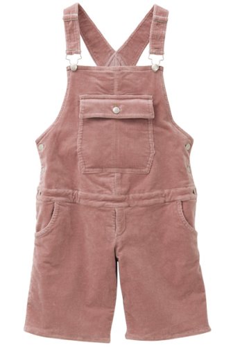コーデュロイは加工であたり感よく着心地らくらく。サスペンダーはアジャスター付きだから臨月でもキュートなスタイルをキープ!