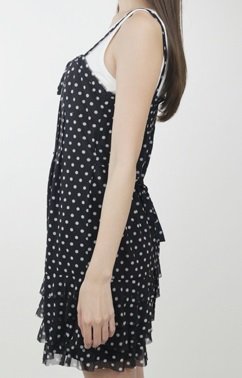 ストレッチネットにドット柄が大人可愛いをアピール。切りっぱなしフリルもおしゃれポイント!