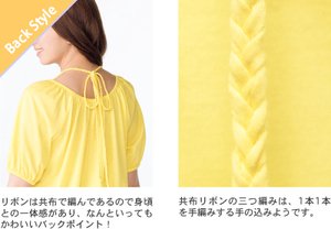 - ●衿ぐりギャザー入り&三つ編み共布リボン付調節可 ラグランローウエスト6段ゴムシャーリング切り替え 袖口ギャザー入り