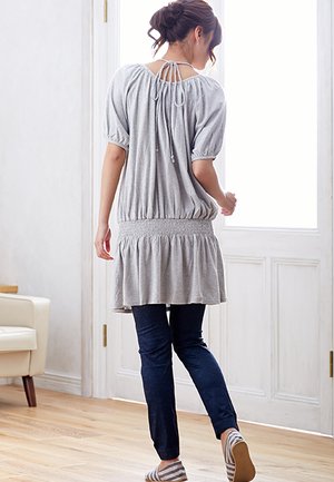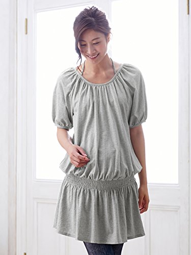 Angeliebe エンジェリーベ 三 つ 編 み リボン 付 チュニック トップ フリー 杢 グレー