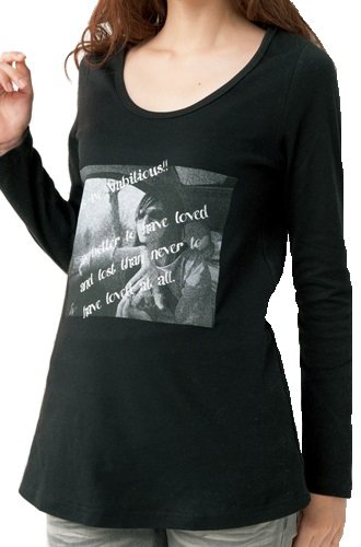 とろみのあるカットソーは、肌馴染みがよくてソフトでしなやか♪程よい厚みでストレッチが効いているから、妊娠初期から臨月、産後だって着られちゃう?フロントのプリントは、転写した写真に英文を乗せたラバープリントで、モノクロの陰影が超イカしてる☆スポンと着るだけ、コーデがビビッとキマリまくりッ!