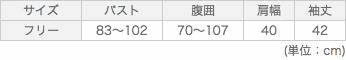 - ●サイズフリー:着丈72㎝、バスト83~102㎝、腹囲70~107㎝、肩幅40㎝、袖丈42㎝