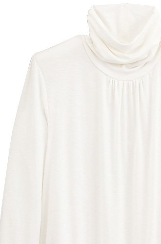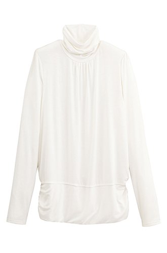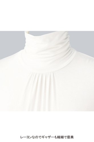 ハイネックトップなしでコーデが不可欠!それほどまでの必須品を、裾に切り替え、ハイネック&裾の両サイドにゴムシャーリング、さらに胸元&肩口にギャザーを寄せてぐっとおしゃれアップ!艶ととろみのあるレーヨンならではの上質カットソーが描くドレープ優しいムードを演出。しっとりとした肌に吸い付くような柔らかな着心地で、裾のダブル切り替えがヘムラインを安定させアウター級の存在感に!