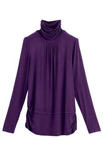 - ●ハイネック両サイド、裾切り替えダブル仕立ての両サイドにゴムシャーリング、胸元、肩口にギャザー入り