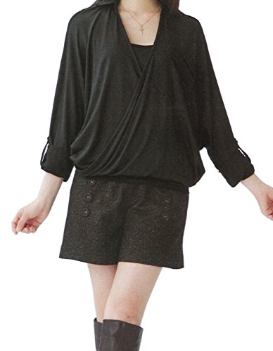 【 アウトレット 】 Angeliebe エンジェリーベ マタニティ 授乳 用 レイヤード 風 トップ 妊婦服 産前 産後 長袖 フリー ブラック