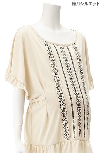 【 アウトレット 】 Angeliebe エンジェリーベ マタニティ バタフライ トップ 妊婦服 産前 産後 半袖 フリー バニラ ホワイト