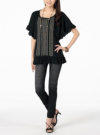 オリエンタルなハンド風の刺しゅうが大人可愛い雰囲気。