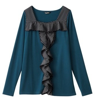 装いのアクセントになるフロントのフリルが縦のラインを強調し、ジャケットのインナーとしても大活躍。