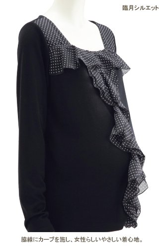 Angeliebe エンジェリーベ マタニティ シフォン フリル カットソー トップ 長袖 妊婦服 ドット L ブラック × ブラック