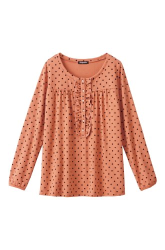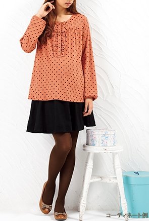 Angeliebe エンジェリーベ マタニティ 授乳 兼用 フロッキー ドット トップス 長袖 妊婦服 フリル L アプリコット オレンジ 20064 20064270