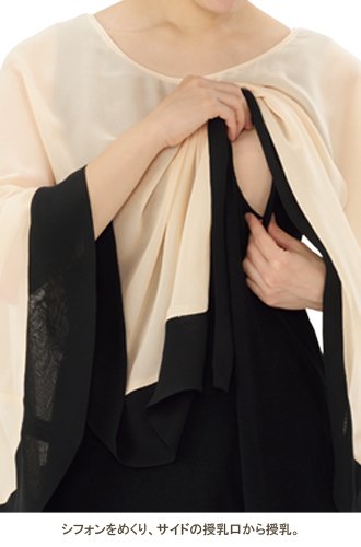 【 アウトレット 】 Angeliebe エンジェリーベ マタニティ 授乳 兼用 シフォン 配色 ケープ インナー タンク 付 妊婦服 9号 ブラック × アイボリー 20292 20292320