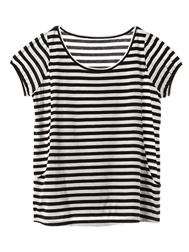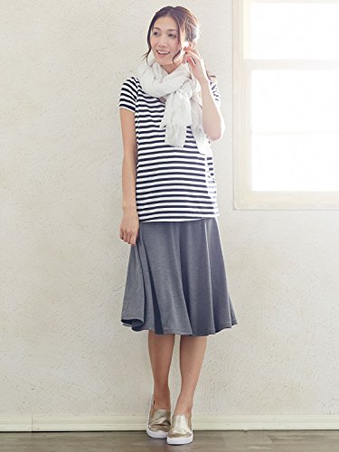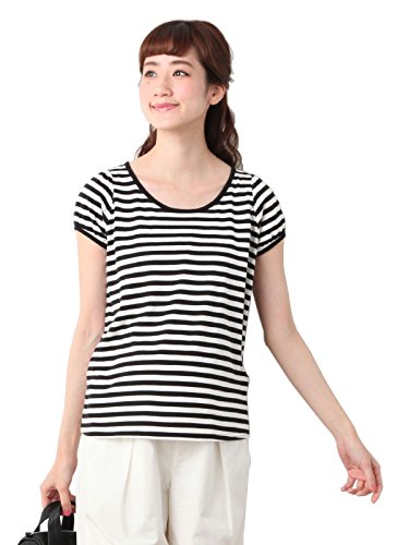 Angeliebe エンジェリーベ 授乳 口 付 パフスリーブ T シャツ M ~ L ブラック ボーダー