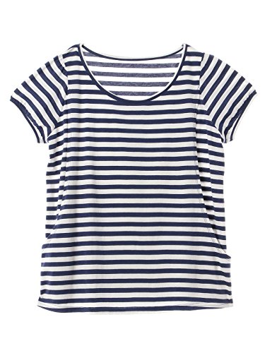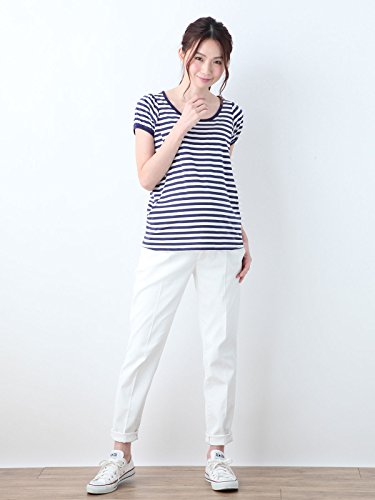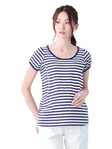 Angeliebe エンジェリーベ マタニティ 授乳口 付 パフスリーブ Tシャツ 産前 産後 妊婦服 授乳服 S ~ M ネイビー ボーダー