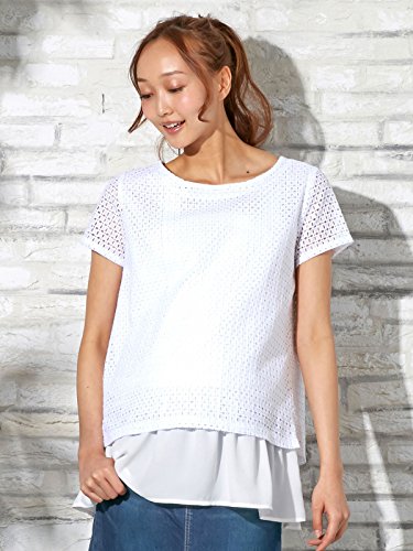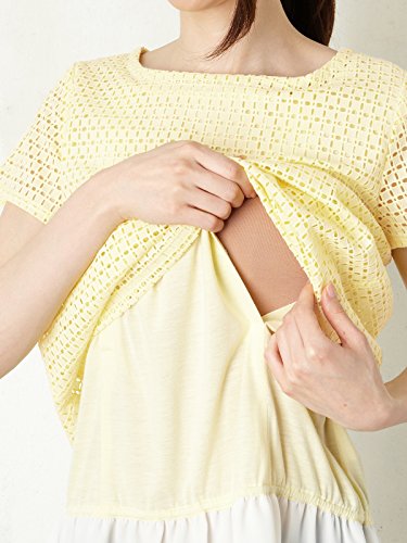 Angeliebe エンジェリーベ 授乳 口 付 カット ワーク レース 裾 フリル チュニック M ホワイト