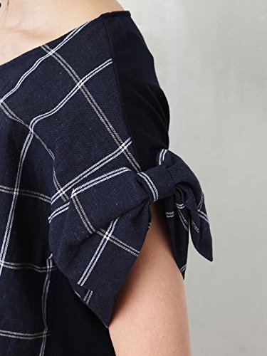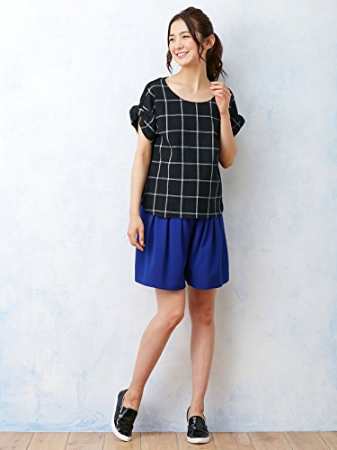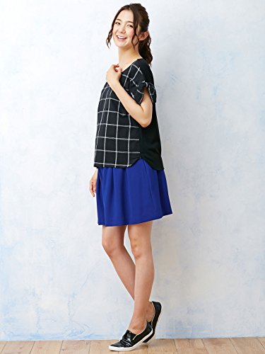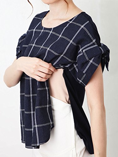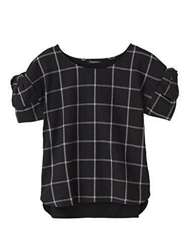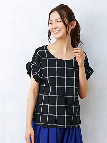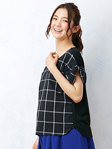Angeliebe エンジェリーベ マタニティ 授乳口 付 麻混 グラフ チェック 袖リボン トップス 妊婦服 半袖 産前 産後 フリー ブラック