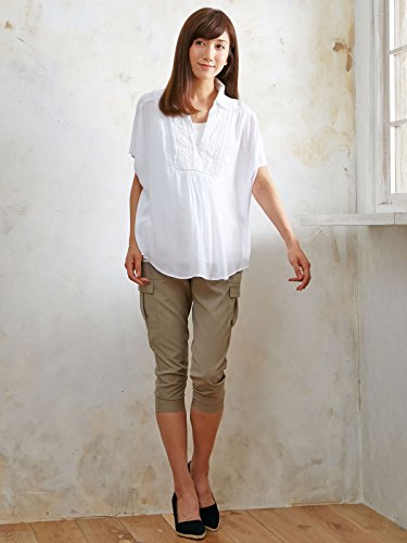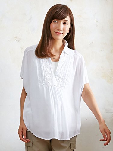 Angeliebe エンジェリーベ マタニティ スキッパー レース プルオーバー 妊婦服 半袖 産前 産後 ブラウス フリー オフ