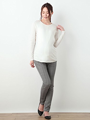 Angeliebe エンジェリーベ 授乳 口 付 やわらか フライス クルー ネック T シャツ S ~ M オフ ホワイト