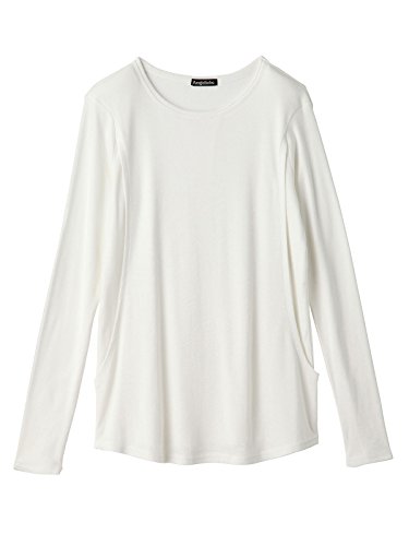 Angeliebe エンジェリーベ 授乳 口 付 やわらか フライス クルー ネック T シャツ M ~ L オフ ホワイト
