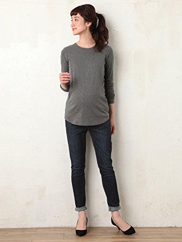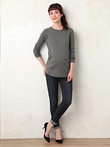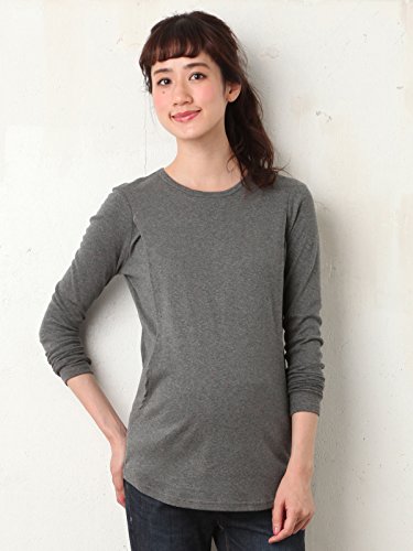 Angeliebe エンジェリーベ マタニティ 授乳口付き やわらか フライス クルー ネック Tシャツ 妊婦服 長袖 産前 産後 S ~ M 杢 チャコール 20934 20934401