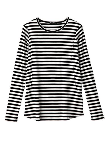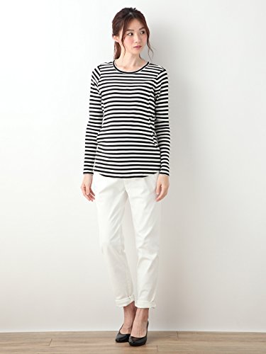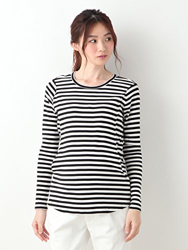 Angeliebe エンジェリーベ マタニティ 授乳口付き やわらか フライス クルー ネック Tシャツ 妊婦服 長袖 産前 産後 S ~ M ブラック × オフ 20934 20934501