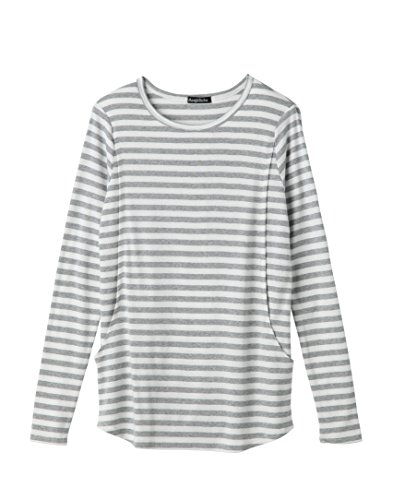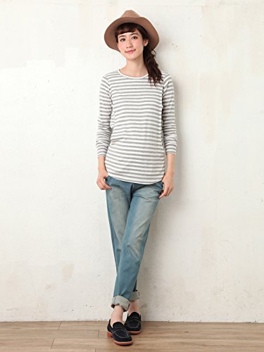 Angeliebe エンジェリーベ マタニティ 授乳口付き やわらか フライス クルー ネック Tシャツ 妊婦服 長袖 産前 産後 M ~ L グレー × オフ 20934 20934602