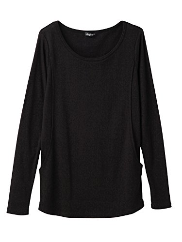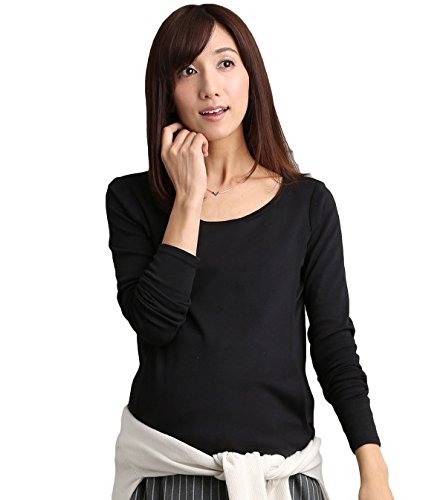 Angeliebe エンジェリーベ マタニティ 授乳口 付 やわらか フライス ラウンド ネック T シャツ 妊婦服 長袖 産前 産後 M ~ L ブラック