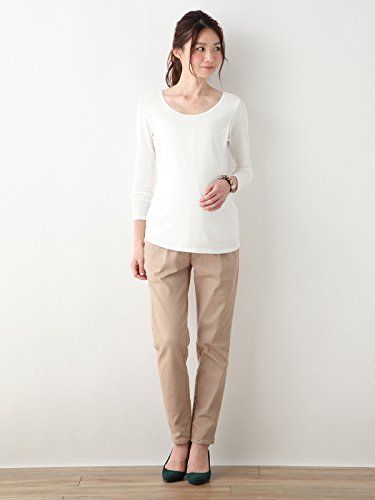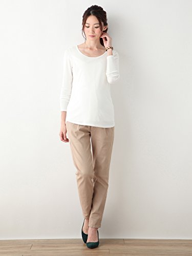Angeliebe エンジェリーベ マタニティ 授乳口付き やわらか フライス ラウンド ネック Tシャツ 妊婦服 長袖 産前 産後 S ~ M オフ ホワイト 20935 20935201