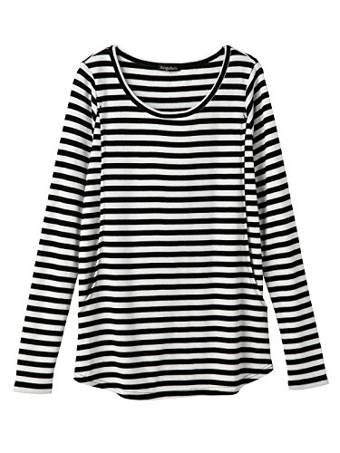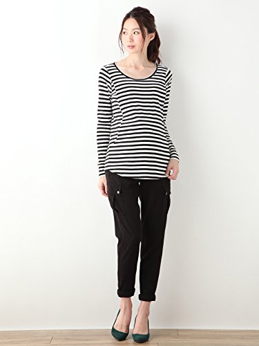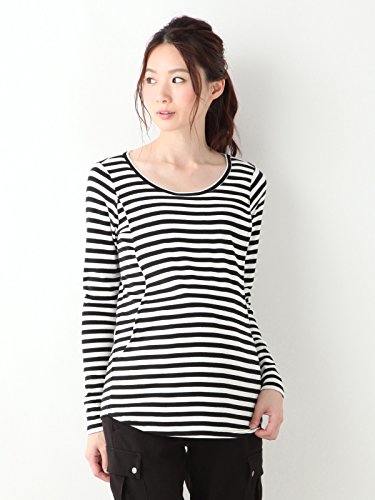 Angeliebe エンジェリーベ マタニティ 授乳口付き やわらか フライス ラウンド ネック Tシャツ 妊婦服 長袖 産前 産後 M ~ L ブラック × オフ 20935 20935502