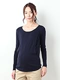 Angeliebe エンジェリーベ マタニティ 授乳口 付 やわらか フライス ラウンド ネック T シャツ 妊婦服 長袖 産前 産後 M ~ L ネイビー