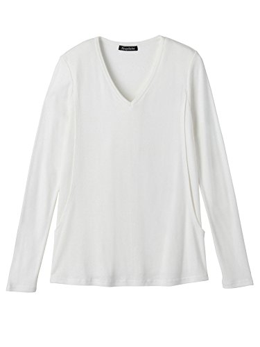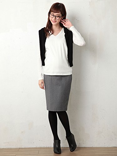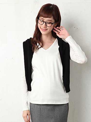 Angeliebe エンジェリーベ マタニティ 授乳口 付 やわらか フライス Vネック Tシャツ 妊婦服 長袖 産前 産後 M ~ L オフ ホワイト