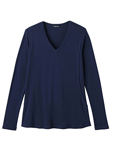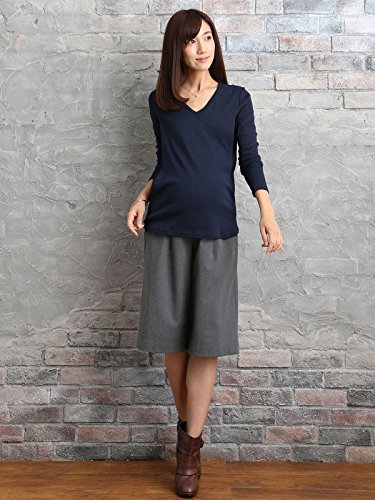 Angeliebe エンジェリーベ マタニティ 授乳口 付 やわらか フライス Vネック Tシャツ 妊婦服 長袖 産前 産後 M ~ L ネイビー