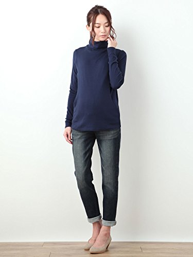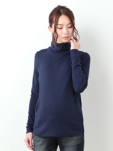 Angeliebe エンジェリーベ マタニティ 授乳口 付 やわらか フライス タートル ネック Tシャツ 妊婦服 長袖 産前 産後 S ~ M ネイビー