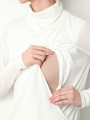 Sweet Mommy あったか 柔らか 上質裏起毛 タートル スリムフィット ロング丈 ふんわり ハイネック 着回し 授乳 トップス 授乳服 マタニティ/ S オフホワイト×ブラック