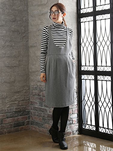 Angeliebe エンジェリーベ マタニティ 授乳口 付 やわらか フライス タートル ネック Tシャツ 妊婦服 長袖 産前 産後 M ~ L 杢 チャコール