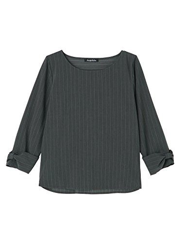 Angeliebe エンジェリーベ 授乳 口 付 袖 リボン ストライプ トップス S ~ M グレー