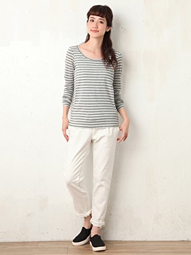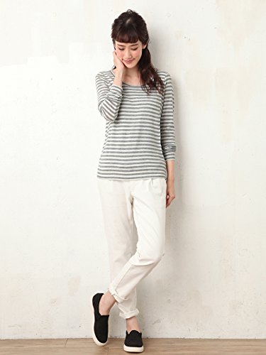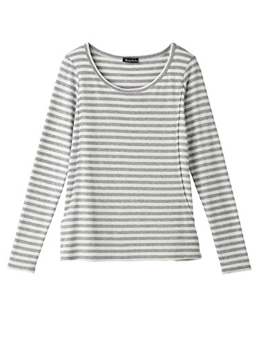 Angeliebe エンジェリーベ 産後 産後用 授乳服 やわらか フライス ラウンド ネック Tシャツ ママ 長袖 フリー グレー × オフ 30052 30052600