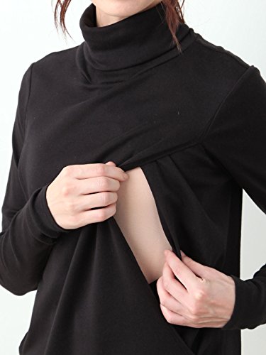 Angeliebe エンジェリーベ 産後 授乳 服 やわらか フライス タートル ネック T シャツ フリー 杢 チャコール