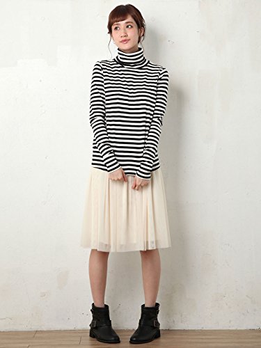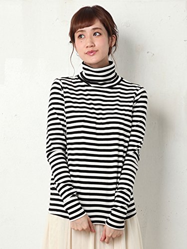 Angeliebe エンジェリーベ 産後 授乳 服 やわらか フライス タートル ネック T シャツ フリー ブラック × オフ