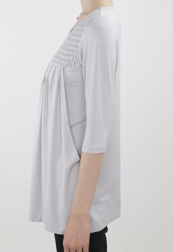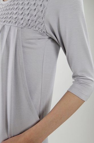- ●前=両サイドのスリットの内側にスラッシュタイプの授乳開きあり 胸元スモッキング刺しゅう&タック切り替え