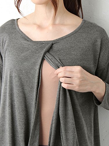 Angeliebe エンジェリーベ マタニティ 授乳 しやすい 裾リボン 2WAY トップス 妊婦服 長袖 フリー グレー ジュ