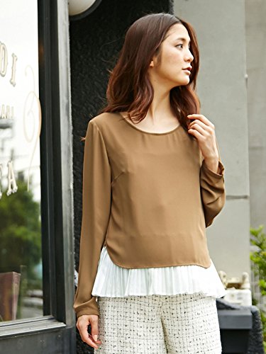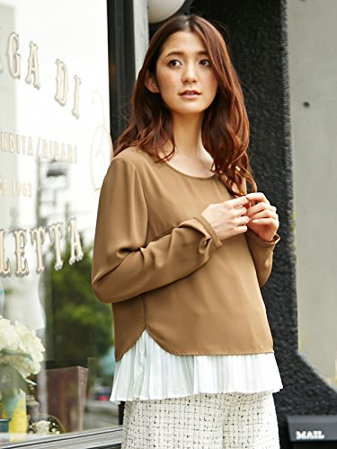 Angeliebe エンジェリーベ マタニティ トップス 授乳口付き 裾 プリーツ レイヤード風 プルオーバー 産前 産後 妊婦服 長袖 重ね着風 S ~ M ベージュ 21110 21110201