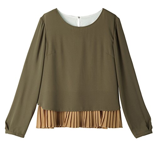 Angeliebe エンジェリーベ マタニティ トップス 授乳口付き 裾 プリーツ レイヤード風 プルオーバー 産前 産後 妊婦服 長袖 重ね着風 S ~ M カーキ 21110 21110301