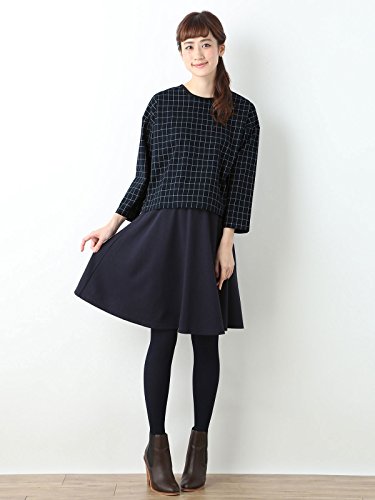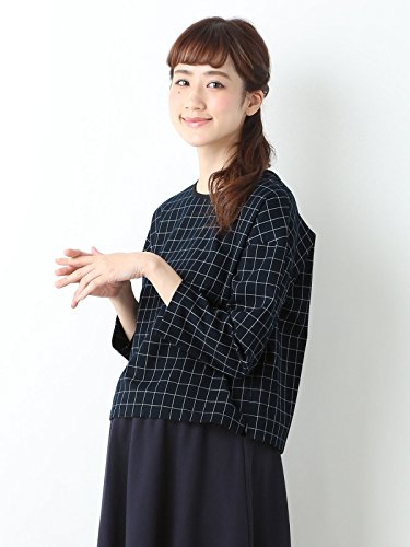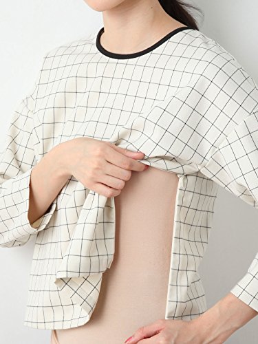 Angeliebe エンジェリーベ マタニティ トップス 授乳口付き ウィンドペン チェック 八分 袖 プル オーバー 妊婦服 産前 産後 M 〜 L ネイビー × アイボリー 20956 20956202