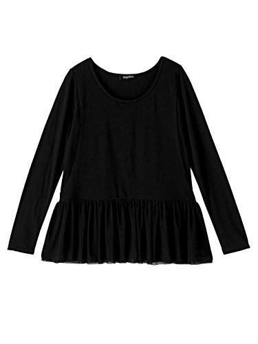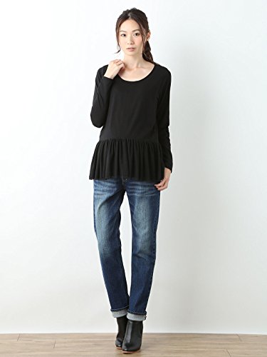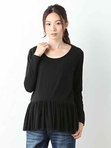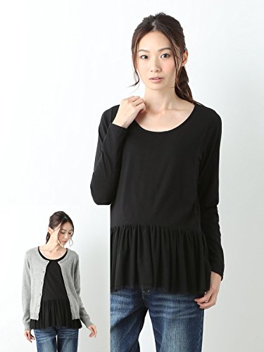 Angeliebe エンジェリーベ 授乳口 付 裾 チュール トップス マタニティー 妊婦服 授乳服 長袖 フリー ブラック